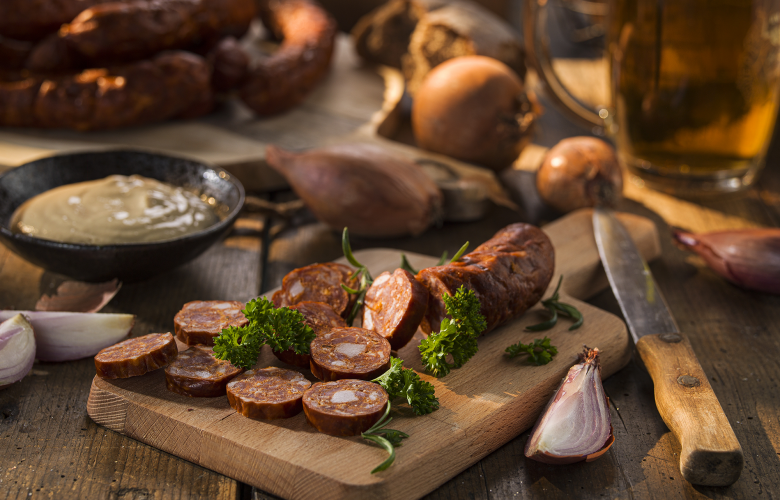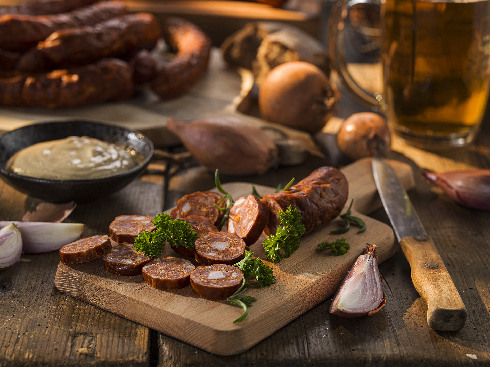 Dôkladne očistené mäso nakrájame a pomelieme. Do pomletého mäsa pridáme soľ, rascu, očistený prelisovaný cesnak, oba druhy papriky a tiež mleté čierne korenie. Zmes dôkladne premiešavame, najlepšie rukami, aspoň 15 až 20 minút. Pripravené mäso necháme odležať do druhého dňa v chlade. Odležanú klobásovú zmes plníme do vyčistených čriev a tvoríme klobásky. Hotové klobásky necháme riadne obschnúť a na ďalší deň môžeme začať údiť. Údime 3 až 4 dni.