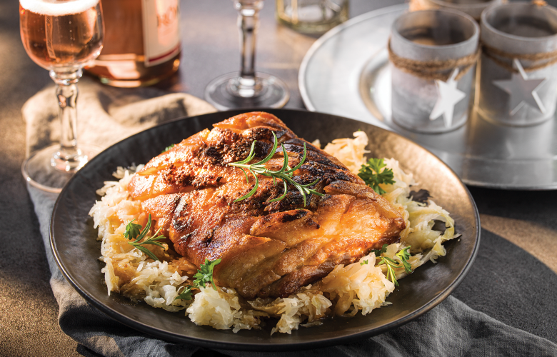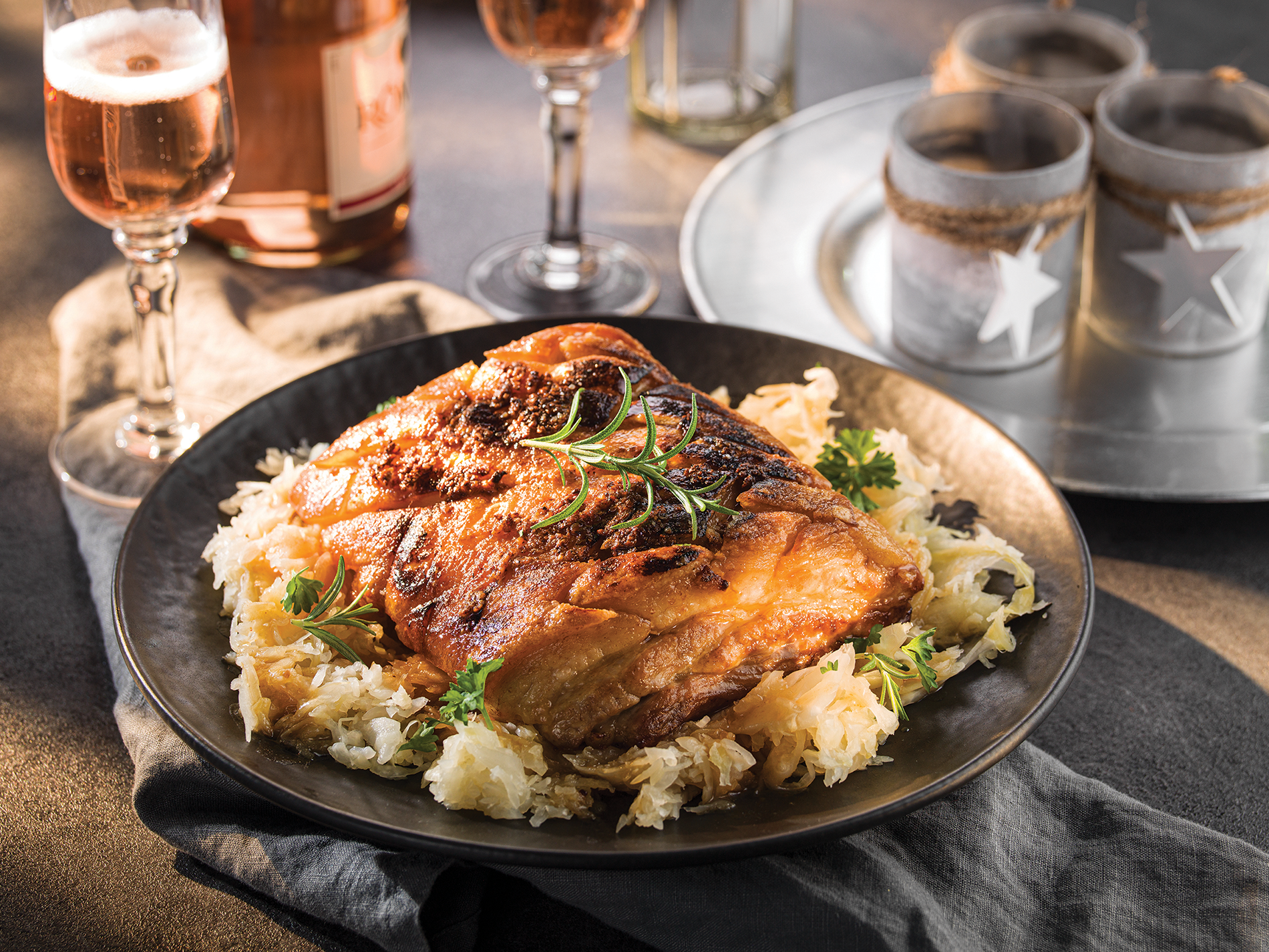 Bôčik vložíme do pekáča a podlejeme vodou, pri 200 °C pečieme domäkka. Podľa potreby ešte podlievame vodou.