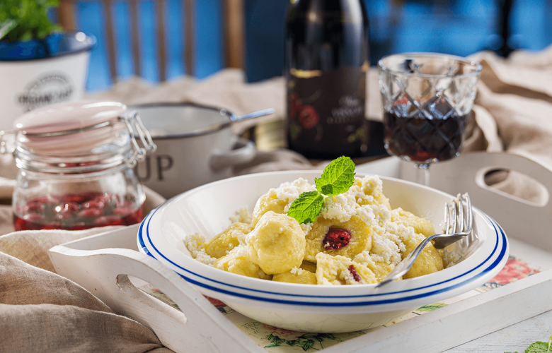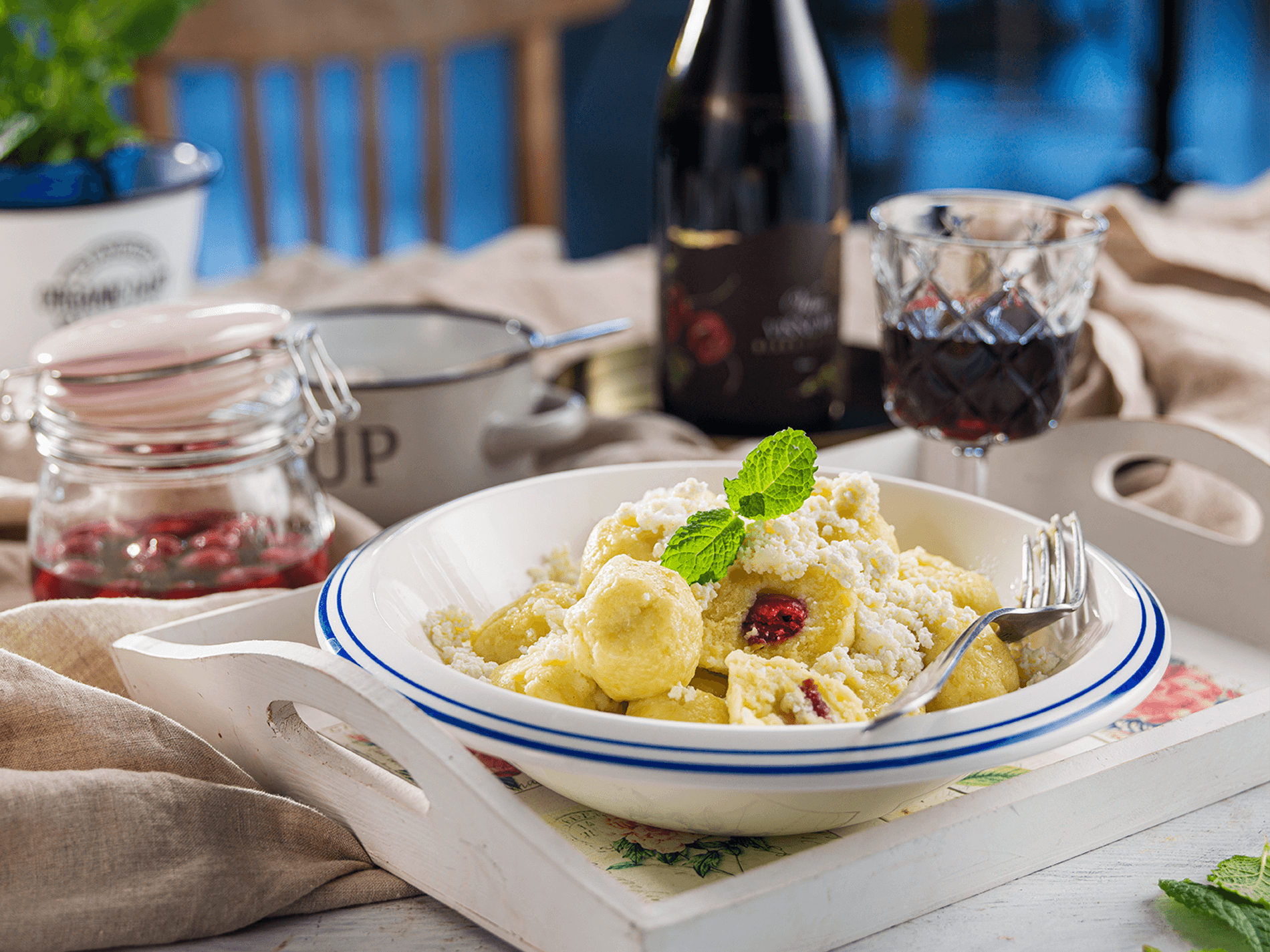 Valec pokrájame na rovnako veľké kúsky, do každého vtlačíme čerešňu a vyformujeme guľku. Pripravené guľky varíme vo väčšom množstve vody so štipkou soli približne 6 až 8 minút.