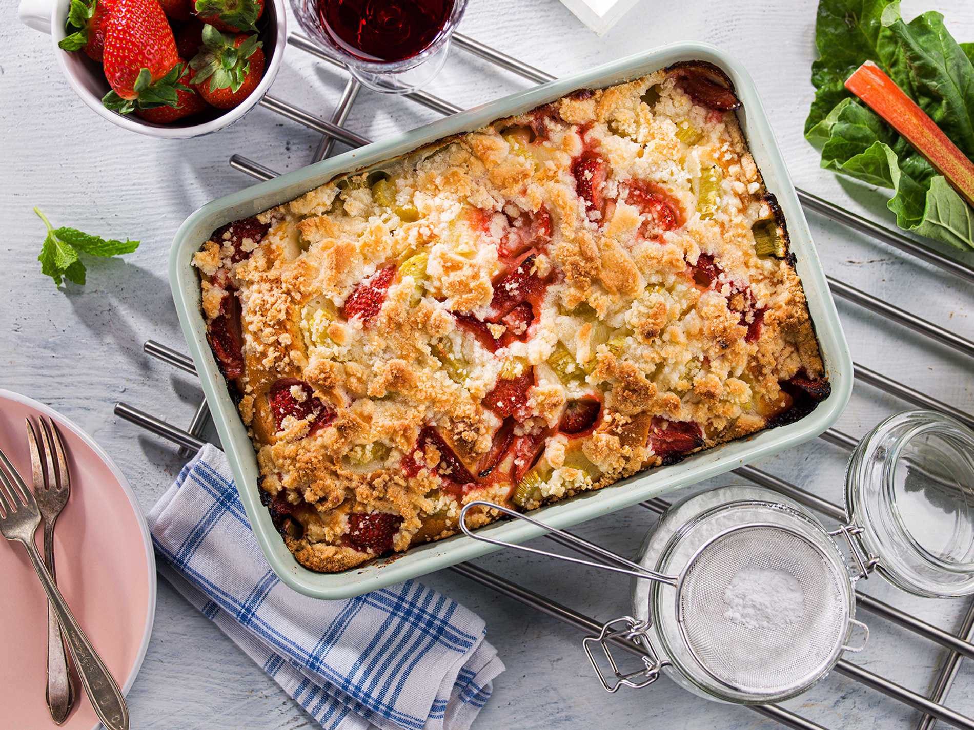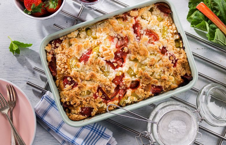 Na posýpku zmiešame zmäknuté maslo, múku, cukor a prstami rozdrobíme na mrveničku. Posypeme ňou povrch koláča a pečieme v rúre vyhriatej na 180 °C dozlatista.