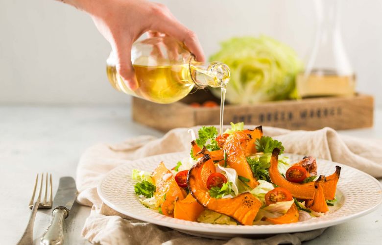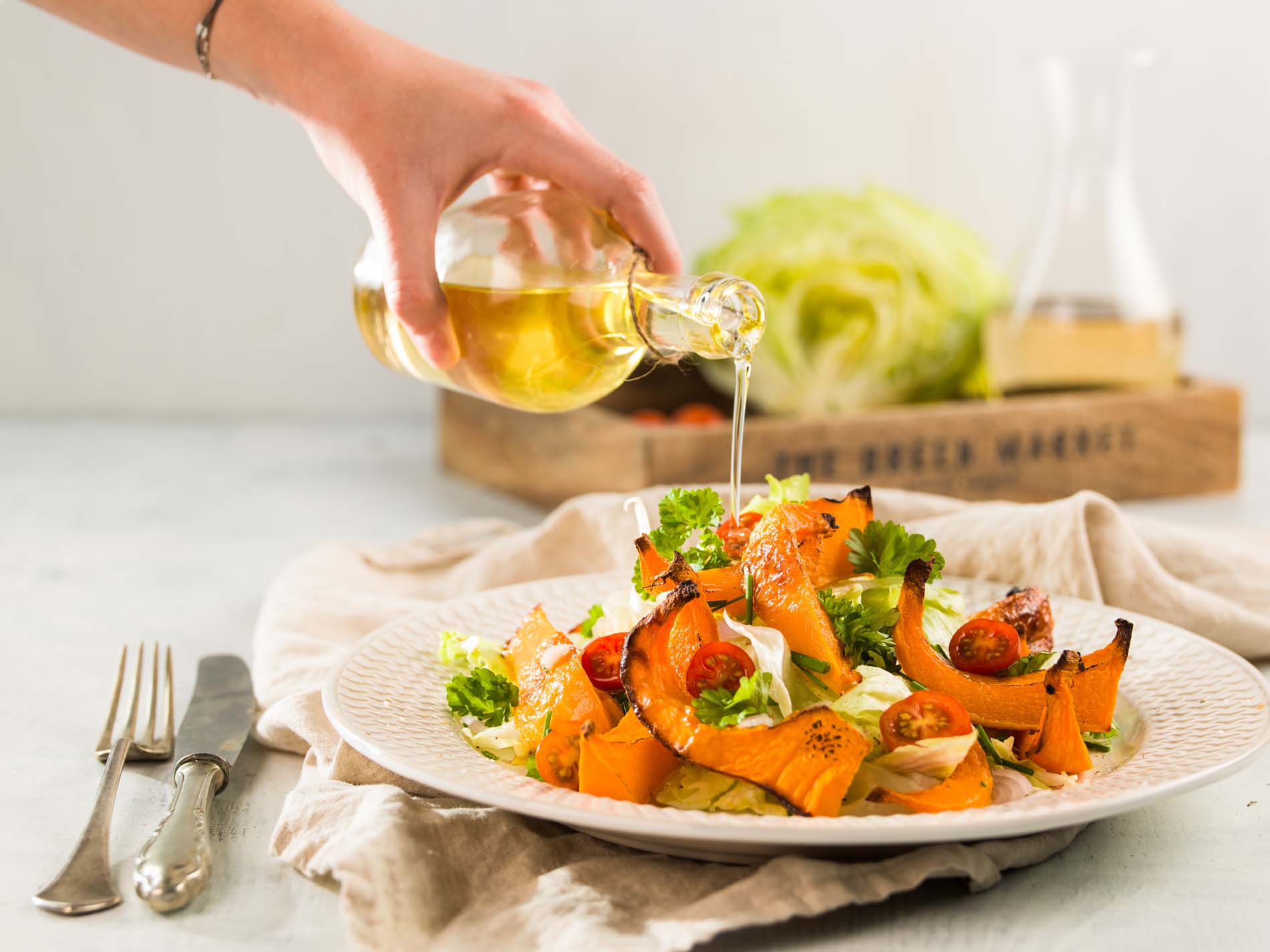 Z balzamikového octu a tekvicového oleja si pripravíme zálievku.