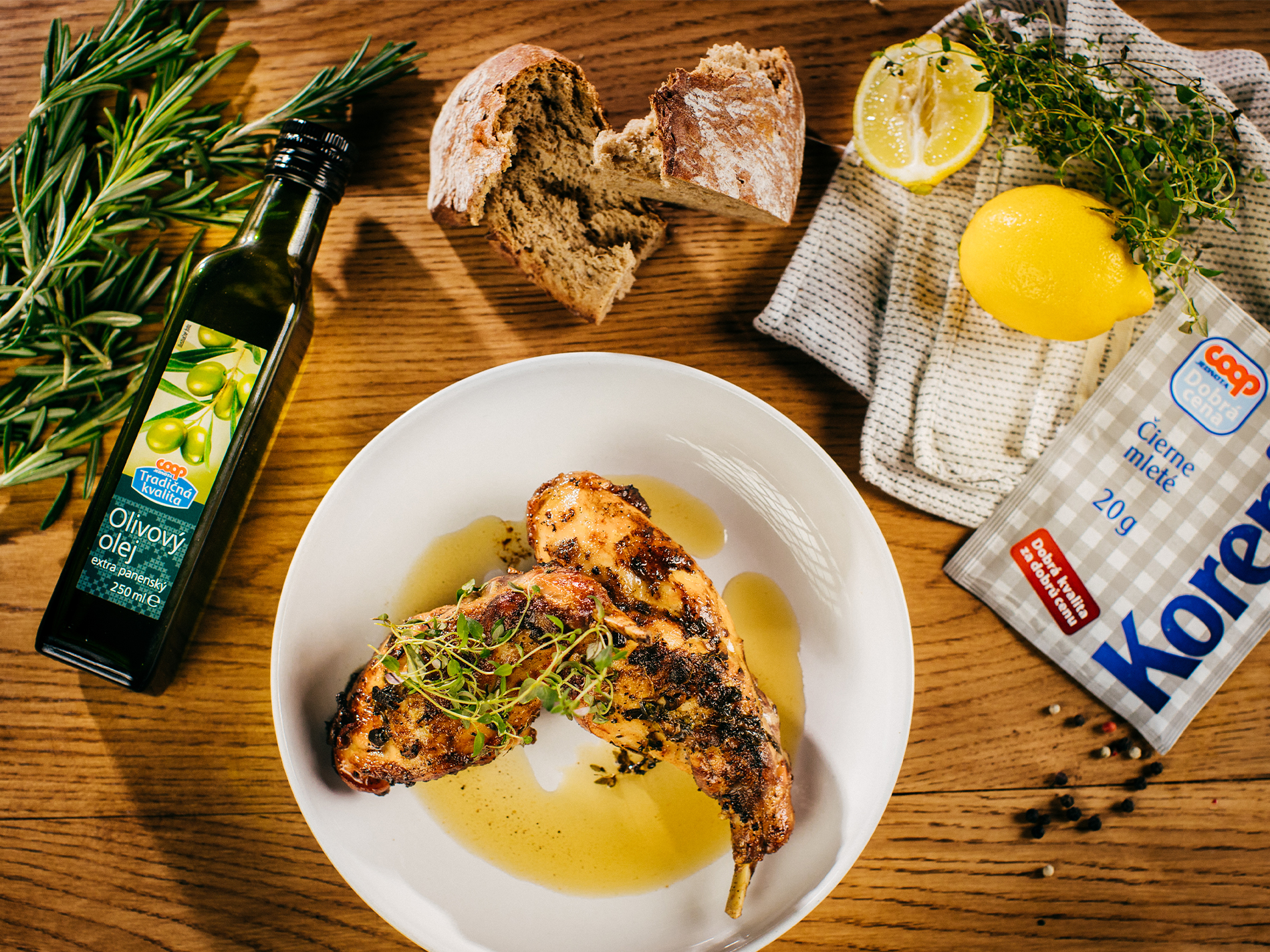 Mäso grilujeme, kým nebude prepečené. Často otáčame a potierame zvyšnou marinádou.