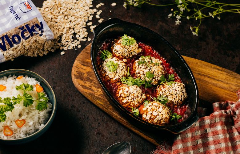 Vločky/strúhanku pridávame, pokým sa cesto nelepí. Vytvarujeme guľôčky a pečieme cca 30 minút na 200 °C.