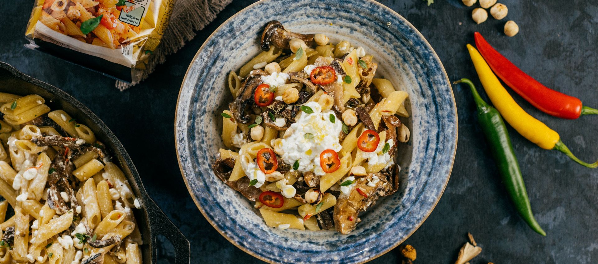 Cestoviny scedíme, dáme do misy a pridáme k nim huby a cottage syr.