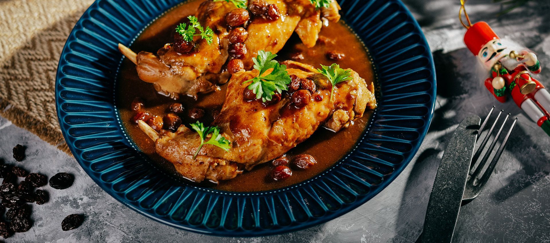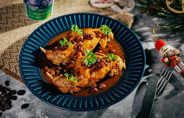 Keď bude vývar uvarený, zlejeme ho ku králikovi (bez zeleniny). Dochutíme soľou a varíme králika do mäkká. Následne ho vyberieme, pridáme slivkový lekvár a ríbezľový džem a zahustíme perníkom. Varíme, kým sa vývar nezredukuje na hustú omáčku.