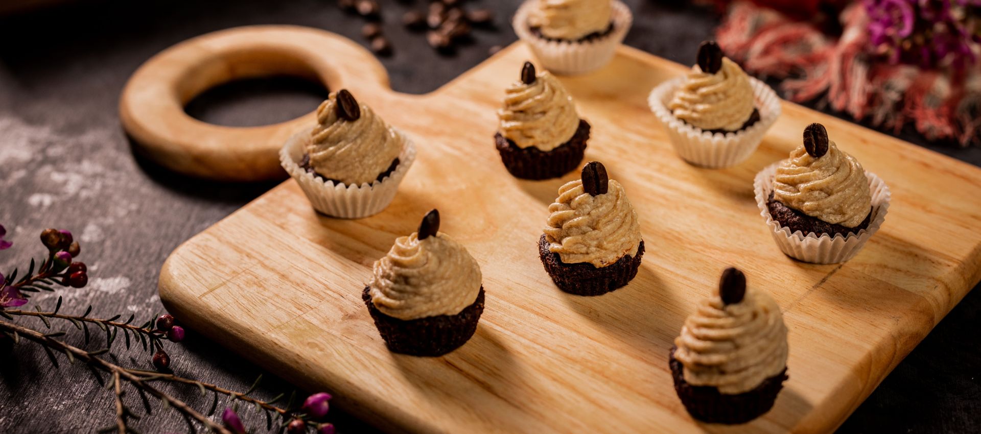 Zmiešame zmes múky, kypriaceho prášku, kakaa, kávy a pomletých mandlí. Rúru vyhrejeme na 170 °C.