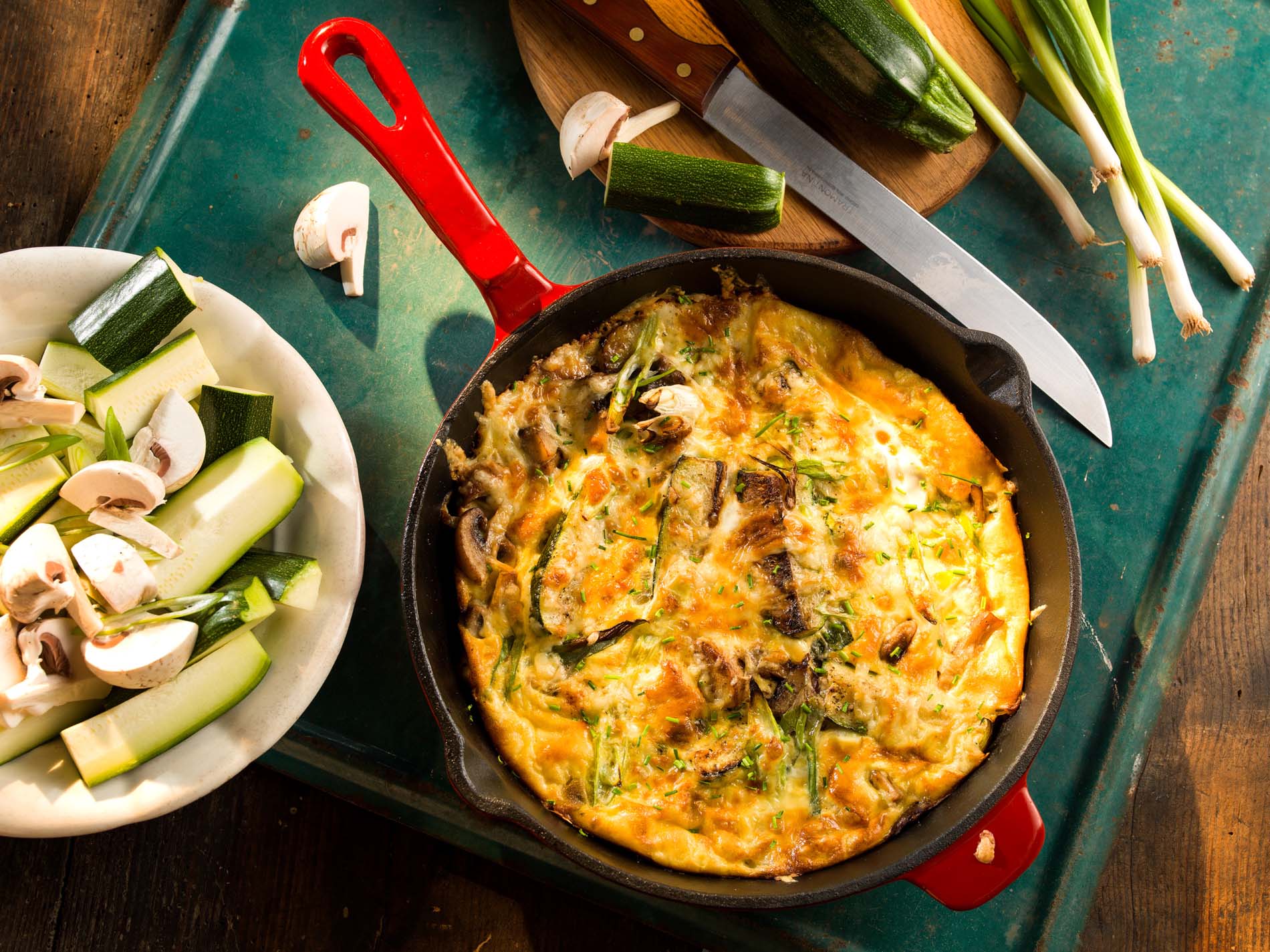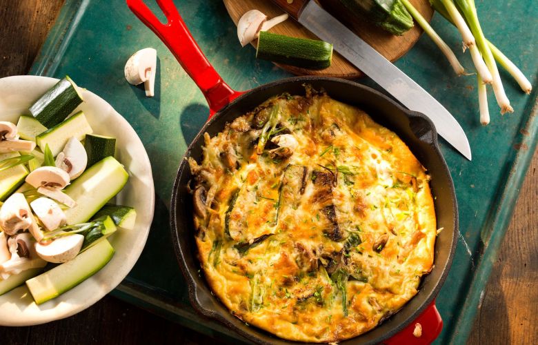 Vajcia rozšľaháme spolu so smotanou a takto pripravenou zmesou zalejeme restovanú zeleninu.