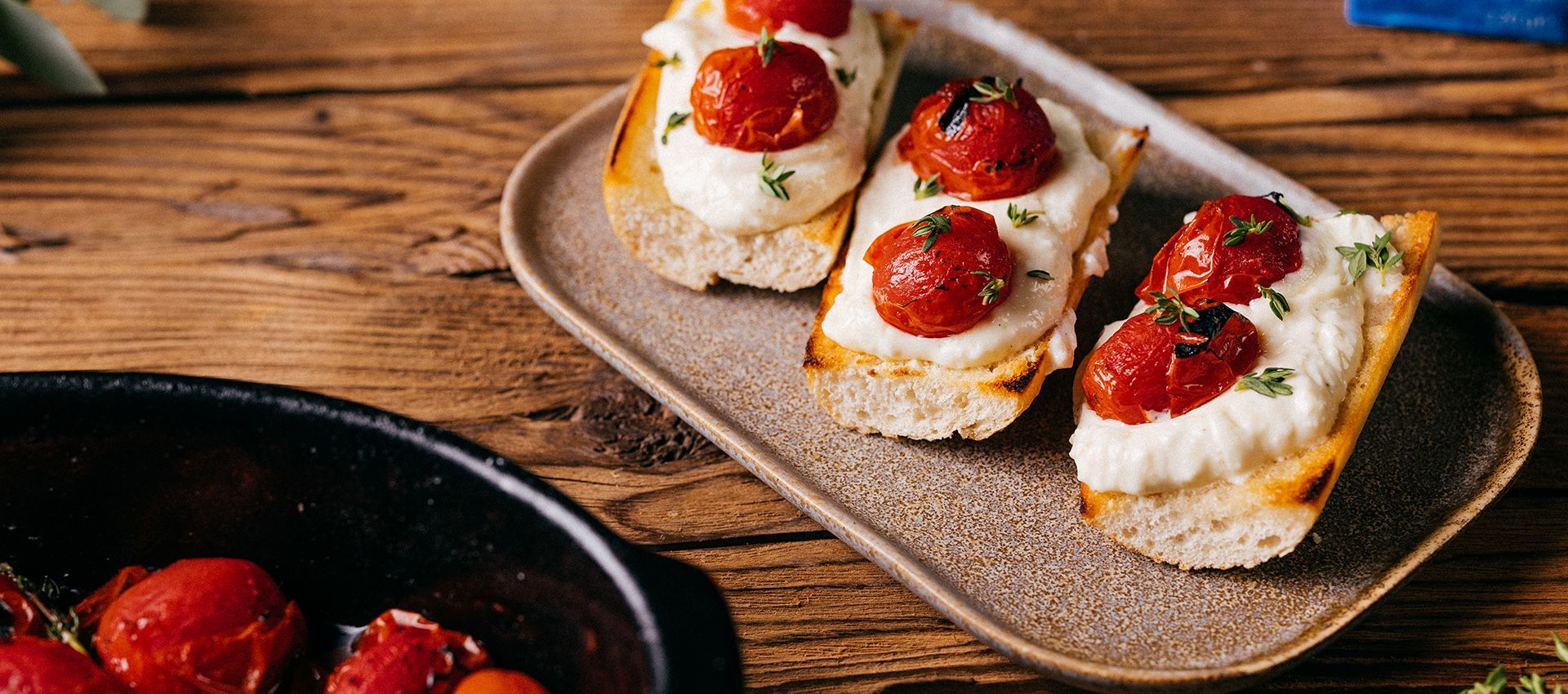 V miske vyšľaháme balkánsky syr, krémový syr a olej. Vmiešame med, citrónovú kôru, osolíme a okoreníme. Na vrch položíme upečené paradajky a podávame s opečenou hriankou na masle.