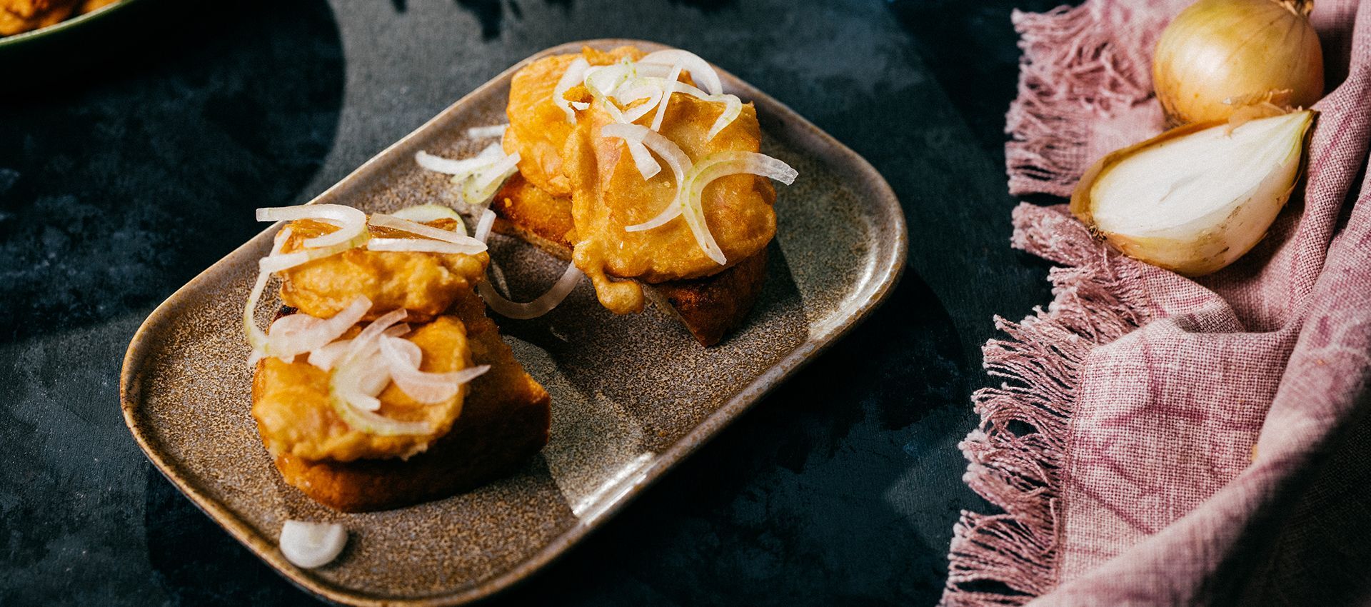 Nakoniec na tanieri podávame s nasekanou cibuľou na hrianke potretej cesnakom.