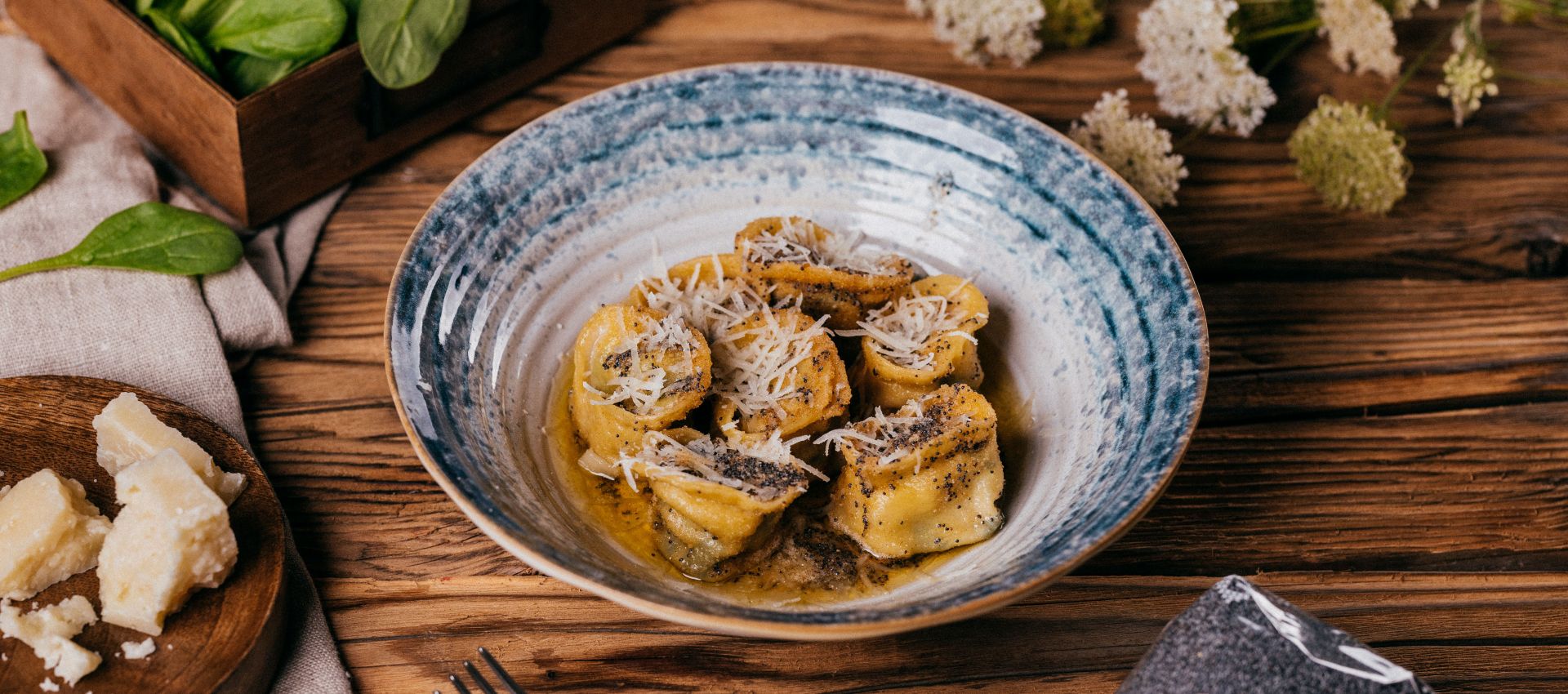 Cestoviny uvaríme v osolenej vode. Na panvici prepálime maslo. Pridáme mak a strúhanku. Nakoniec vložíme tortellini a prehrejeme. Podávame s Pecorino Romano.