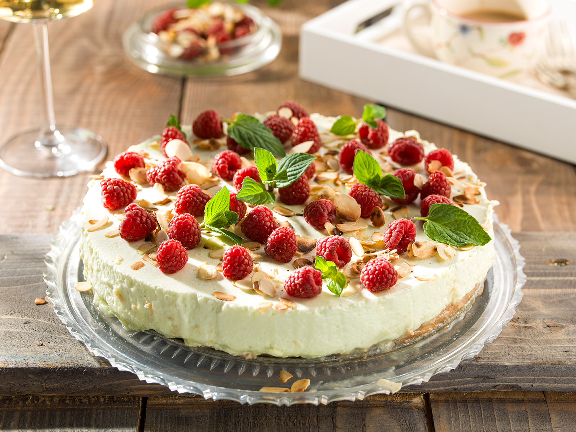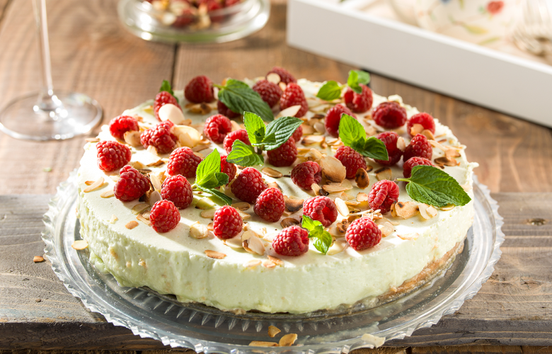 Krém navrstvíme na korpus, navrch poukladáme maliny a cheesecake dáme aspoň na 4 hodiny do chladničky. Pred podávaním posypeme nasucho opečenými mandľovými lupienkami.